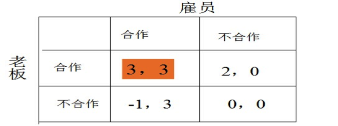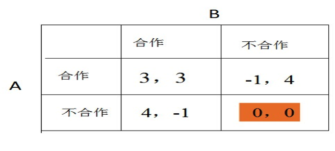 假如兩個人組成的社會,每個人都有兩個選擇,可以選擇合作,也可以選擇不合作。當然了,這個概念可以作為一般應用,也可以理解為在團隊中的努力還是不努力,合作是努力,不合作是不努力。你也可以講合作就是誠實,不合作就是欺騙。為了方便簡潔我們簡單地用合作和不合作。這樣的話,每個人最終會得到什么,不僅依賴于你選擇合作或不合作,還依賴于別人的選擇。